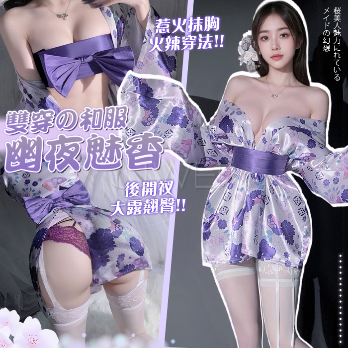 幽夜魅香.櫻花繪卷の詩意剪影雙穿玩法大蝴蝶結腰封和服【和服+腰封+T褲】
