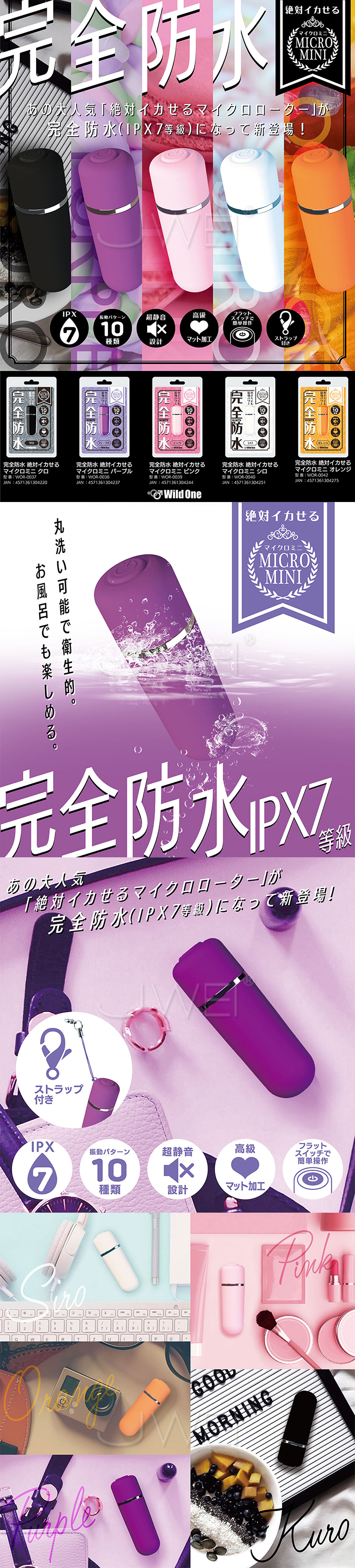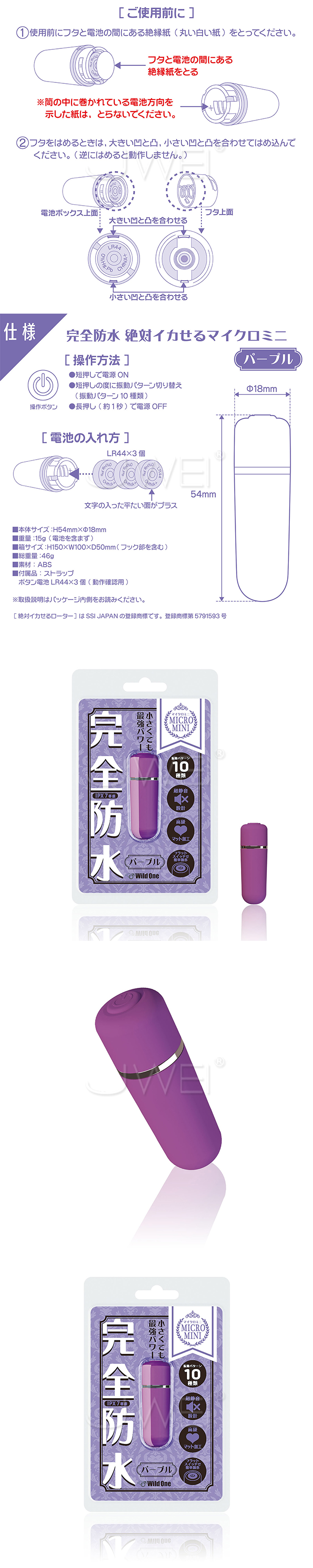 日本原裝進口Wild One.MICRO MINI 完全防水 絶対イカせる 10段強震迷你跳蛋【紫色】