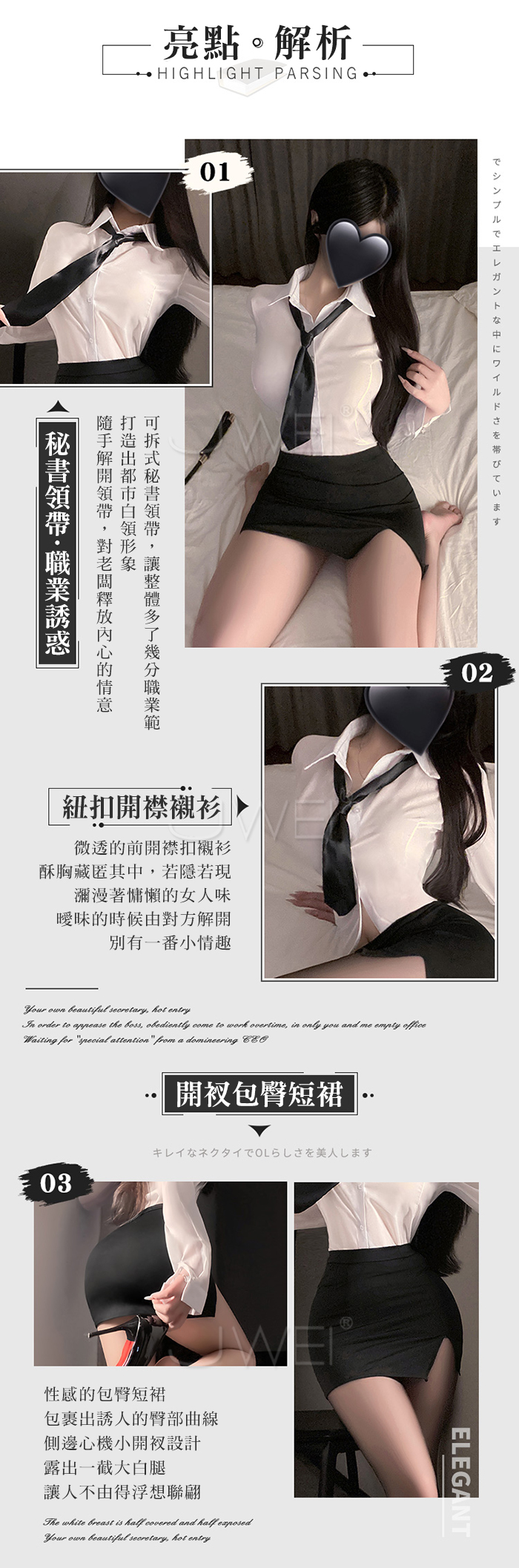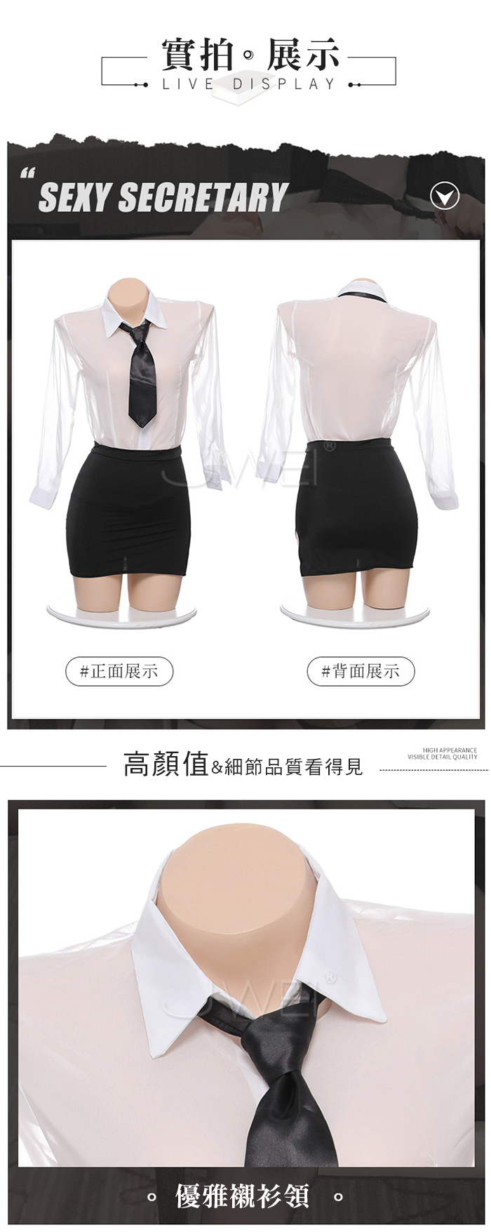 ►您現在的位置:首頁>風情秘書.透視開襟男友風襯衫開衩包臀短裙誘惑秘書套裝【襯衫+領帶+包臀裙+內褲】