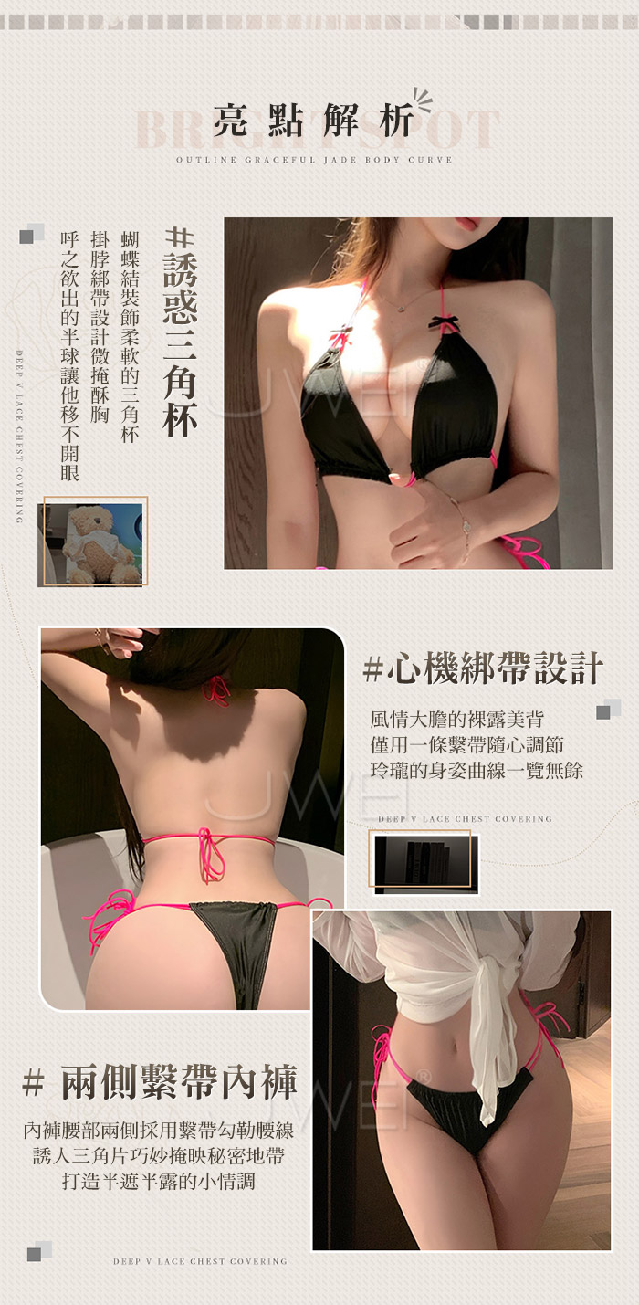 ►您現在的位置:首頁>撞色誘惑.性感辣妹撞色三點式綁帶比基尼【胸罩+內褲】