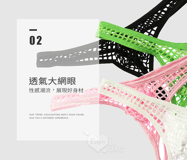 | 《 Enjoy Love 》性感半透大網孔男士丁字褲 - 白﹝L﹞