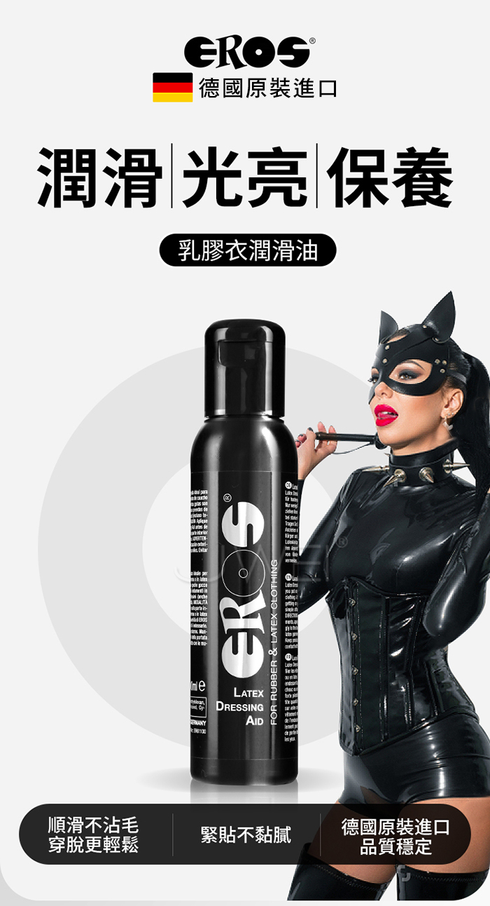 實驗驗證:即便是多毛的體膚也能毫無問題地穿戴進去。 穿乳膠裝卡卡的?讓這瓶潤滑液拯救你的每一次穿脫! 【產品特色】 ✔ 無水、無油、無香料,貼身更安心 ✔ 獨家潤滑配方,讓乳膠服緊貼不黏膩 ✔ 穿脫更輕鬆,不再卡關、不再拉扯 ✔ 減少摩擦,延長乳膠材質壽命 ✔ 德國原裝進口,品質穩定,專業首選 【使用方式】 1.噴灑於乾燥肌膚或乳膠衣內側 2.均勻塗抹後即可穿著 3.使用後可用濕布擦拭,無需沖洗 ■容量:100ml ■產地:德國