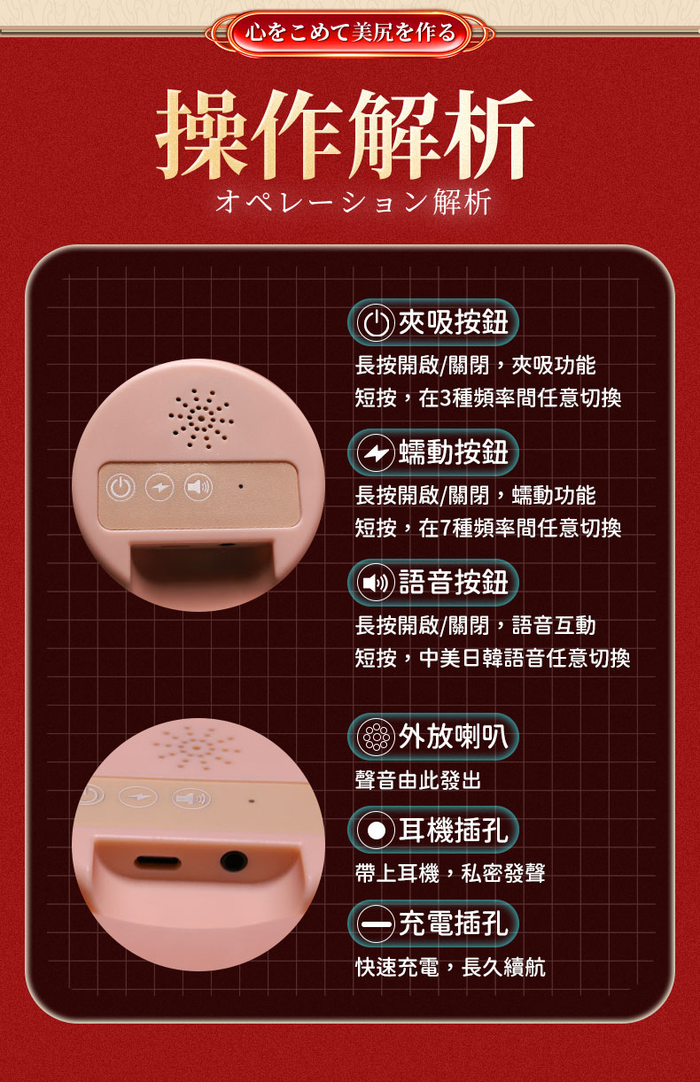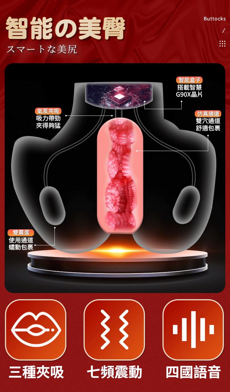 | 柯基臀【吮吸青春款】細膩皮膚 顆紋陰肛二穴自慰器﹝智能夾吸吮+震動﹞贈耳機