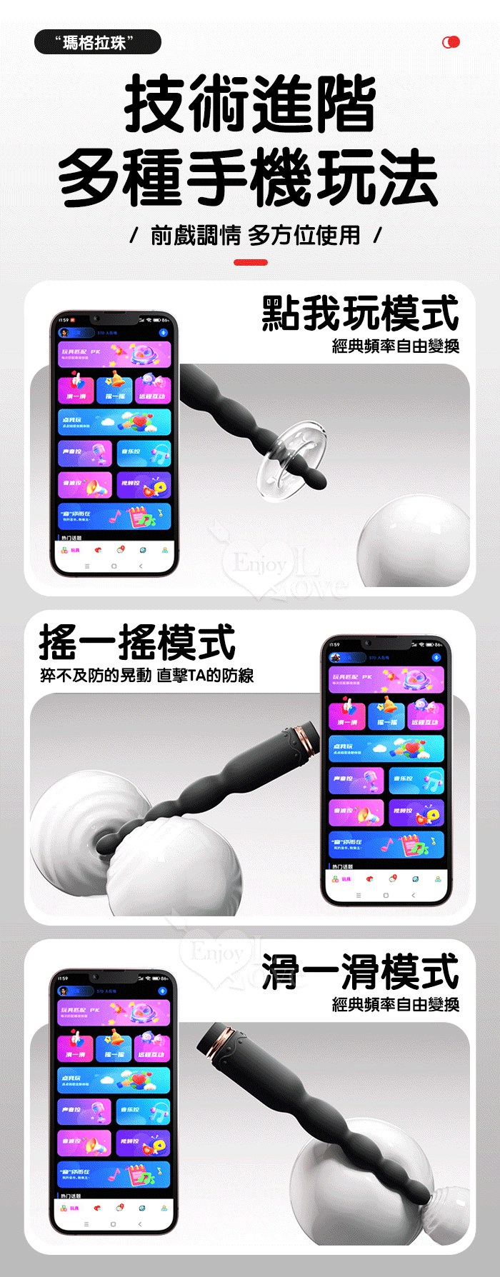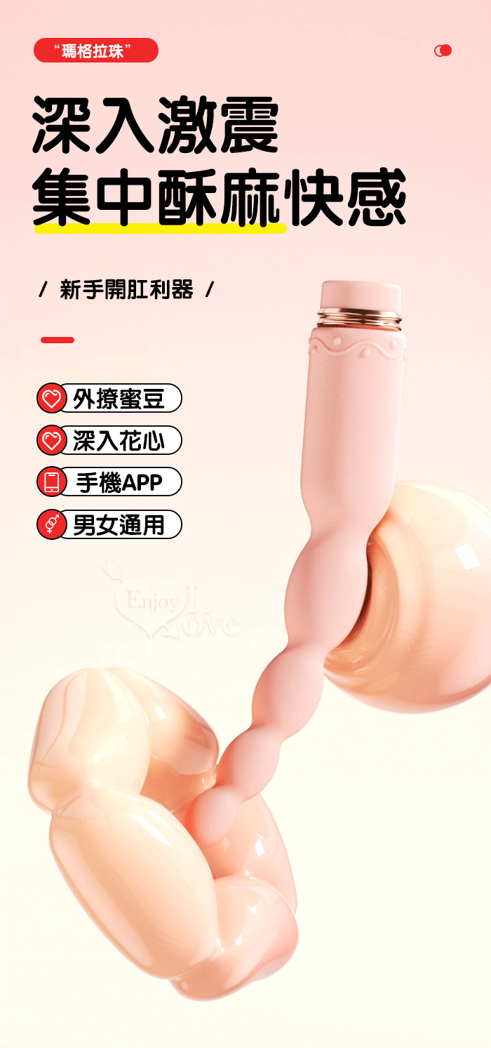 | ROSELEX 新手玩家 瑪格連環拉珠按摩棒~10頻強勁震動/細小易入/男女通用/可手機APP遙控