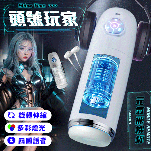 ROSELEX勞樂斯.頭號玩家 10頻伸縮旋轉透明腔道元氣飛機杯﹝四國語音呻吟+多彩氛圍燈+耳機﹞白