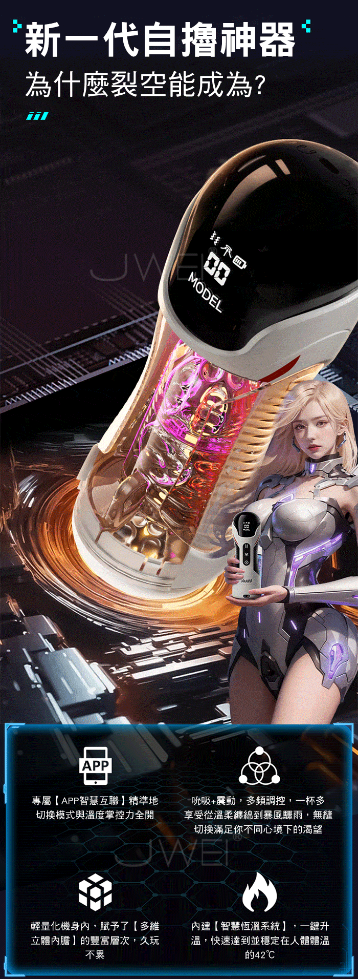 烈空者.8段夾吸+8段爆震 深穴吞吐榨汁 加溫抑菌APP智控自擼飛機杯