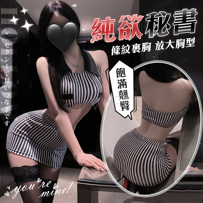 純欲秘書.條紋裹胸放大胸型露腰美背包臀秘書套裝【上衣+包臀裙+T褲】