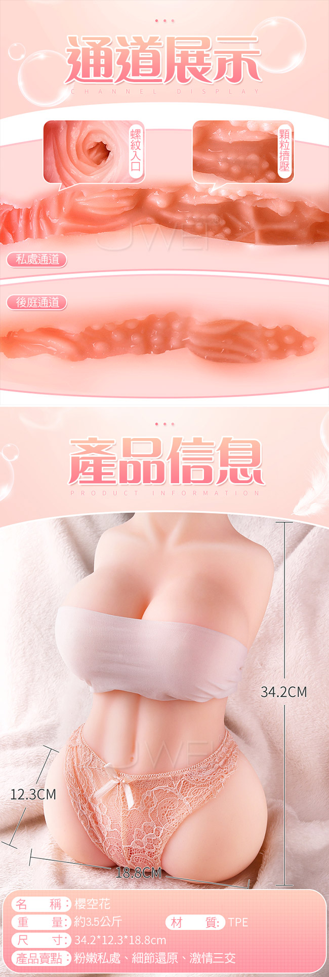 ■尺寸:大小詳如圖片標示 ■材質:TPE ■重量:約3.5kg ■特色:細節還原、雙通道、粉嫩私處、激情三交