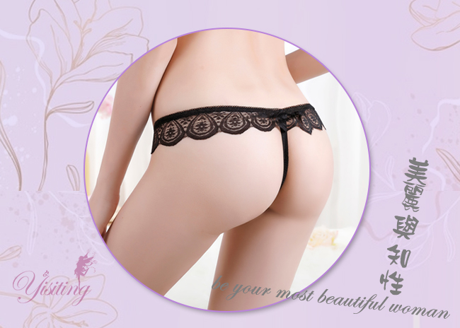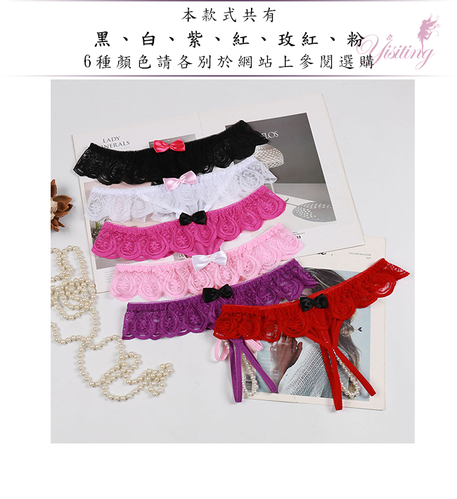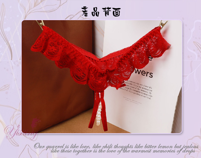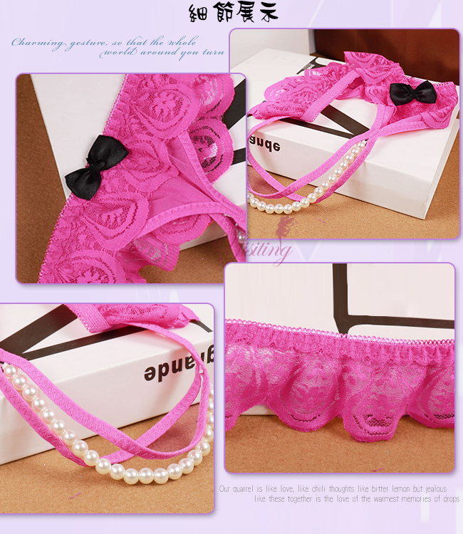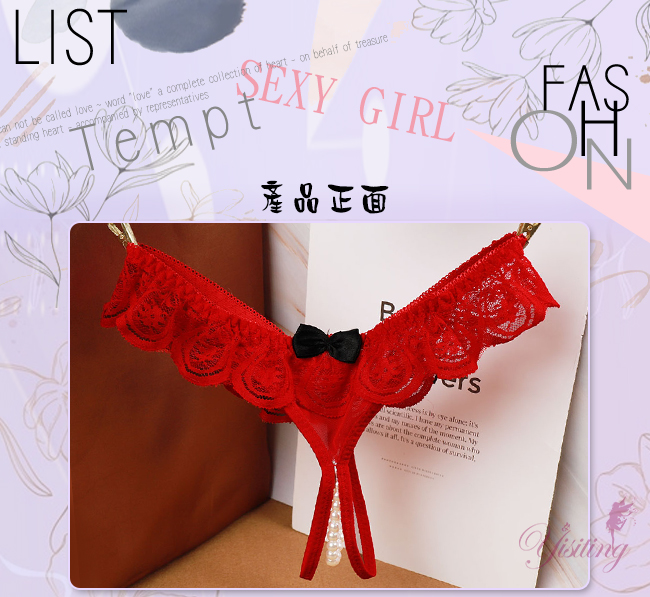 完美挑逗!蕾絲花邊露屁屁串珠開襠低腰褲﹝紅﹞