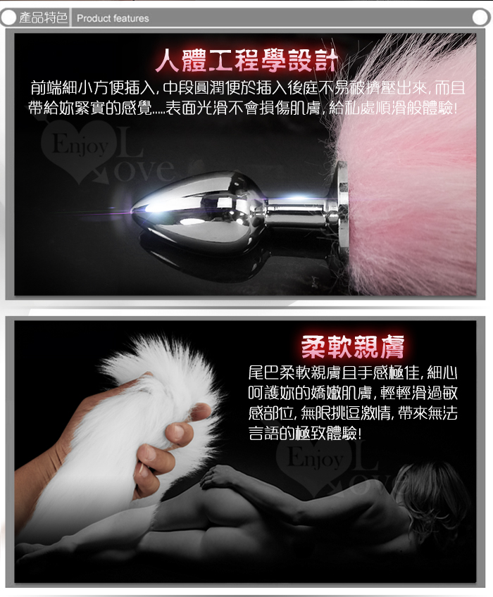 激性扮演狐狸精 ‧ 不銹鋼後庭肛塞+尾巴毛 - 黑﹝M 可組裝拆卸﹞
