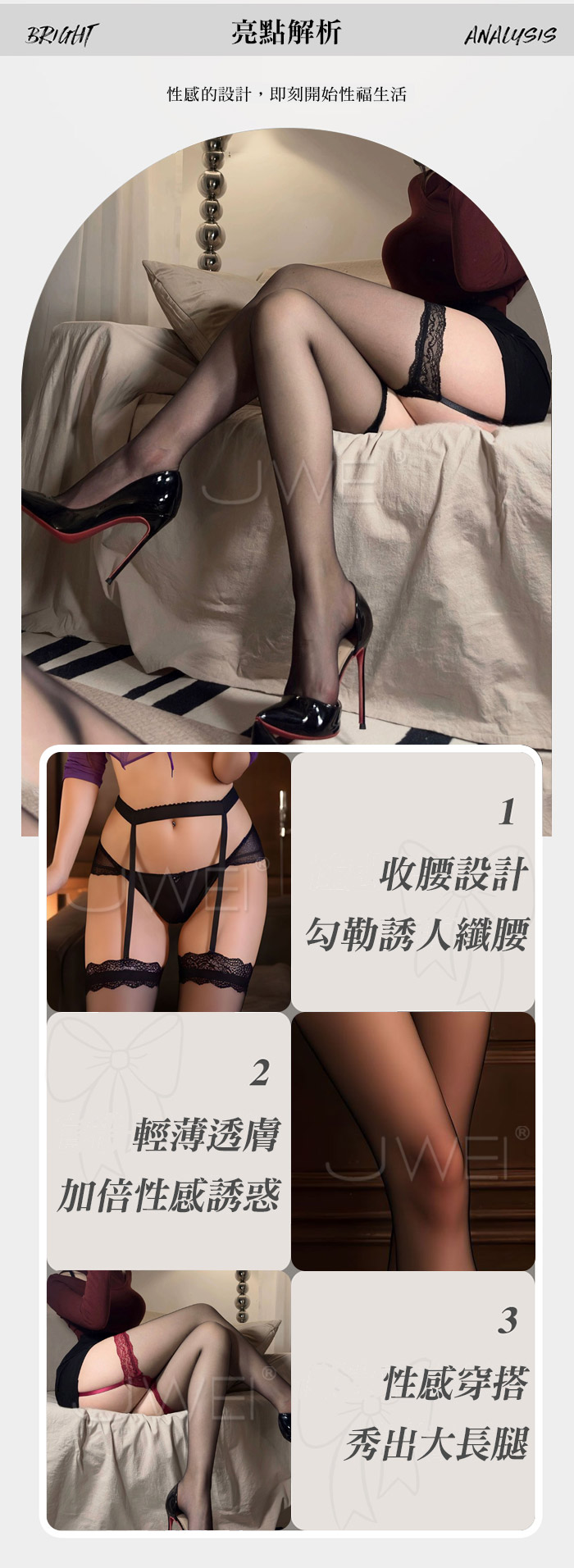 曖昧圓舞曲.純欲一體式吊帶腿環長筒絲襪【黑】