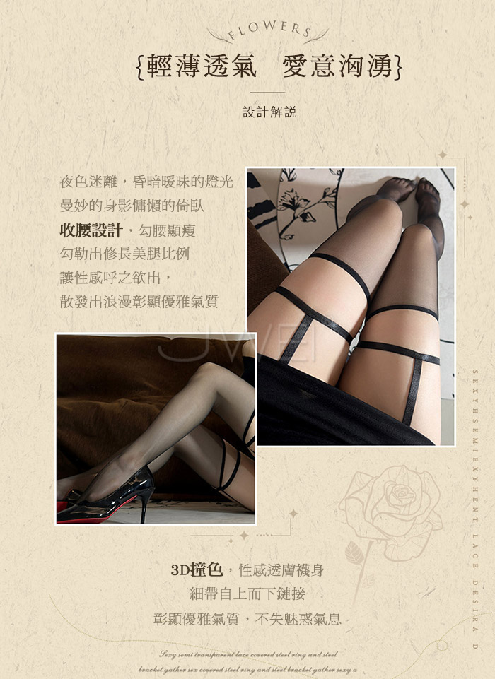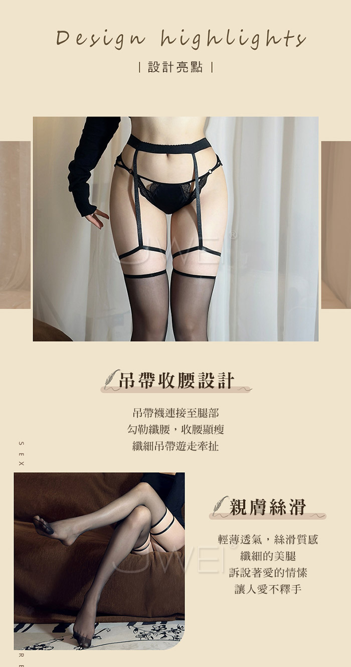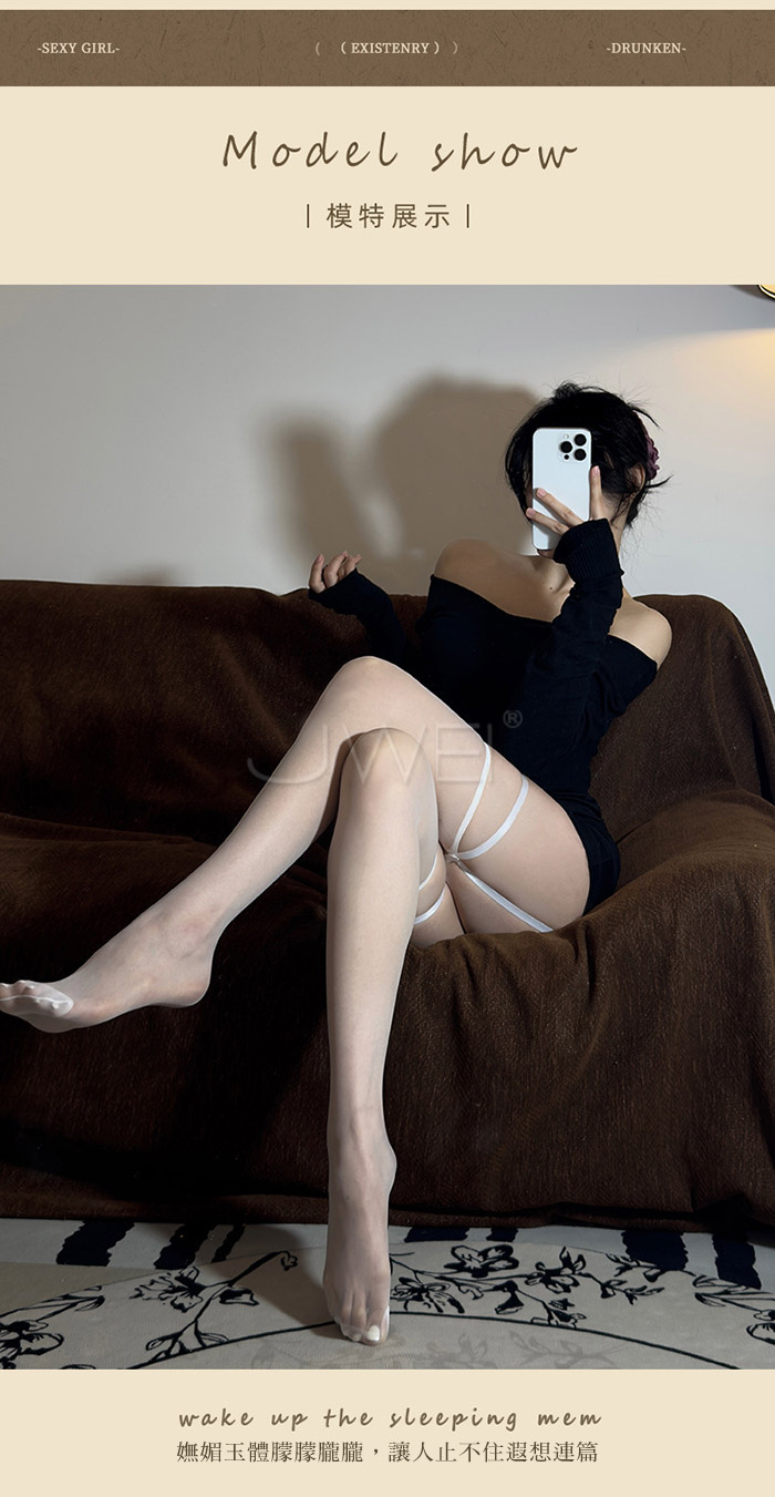 曖昧圓舞曲.純欲一體式吊帶腿環長筒絲襪【紅黑】
