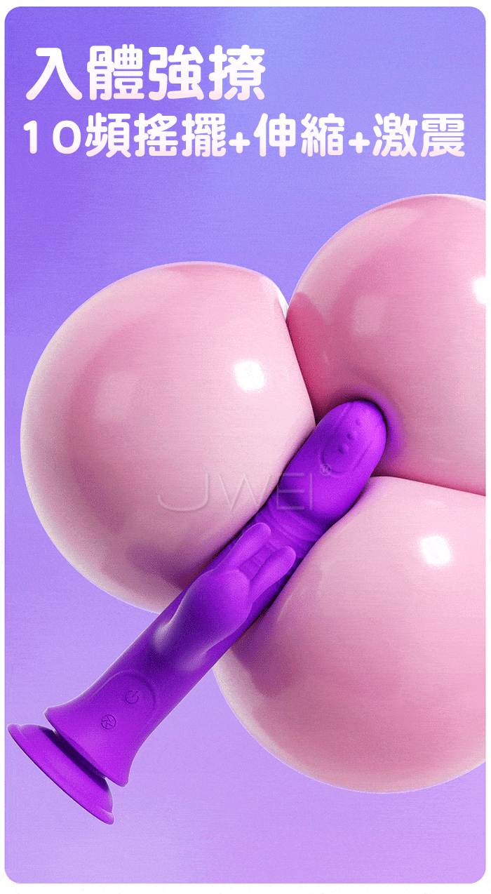 花樣多.10x10頻強力伸縮 G點狂攪 撩撥強震 兔頭拍打 激爽吸盤按摩棒