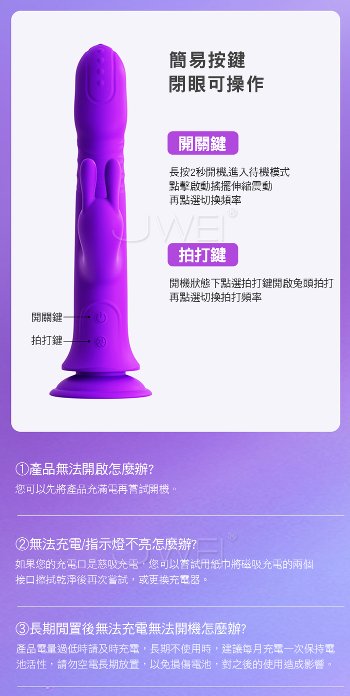 ■功能: 10頻搖擺伸縮震動,10頻兔頭拍打