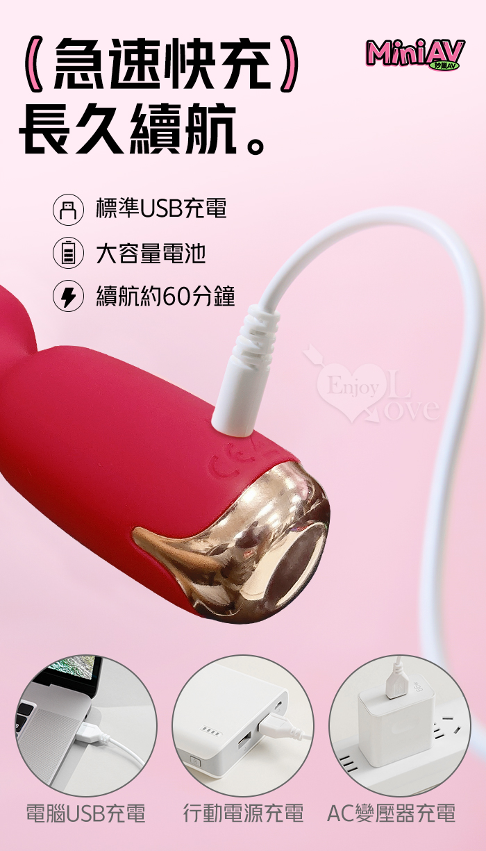 ROSELEX 勞樂斯 ‧ NEW全新升級~妙巢爆震AV棒 10調頻/智能加溫/小巧随身360度彎曲AV棒﹝櫻花粉﹞
