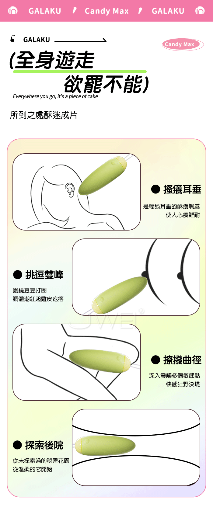 ►您現在的位置:首頁>GALAKU.跳跳糖 10頻爆跳穿透強震 深肌快感 加厚矽膠變頻跳蛋【AI智控款-綠色】