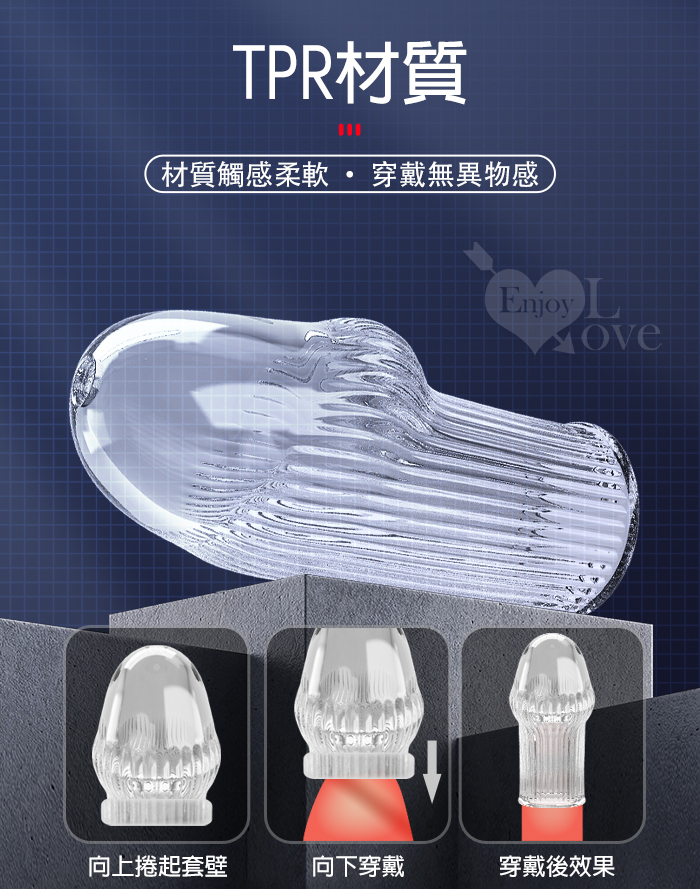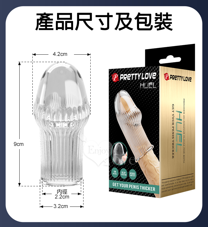 派蒂菈 ‧ HUEL 休爾 凹凸直線螺紋刺激/隱身/持久/武裝強化老二造型套 - 頭部出精口設計