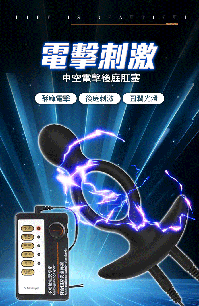 | Electric shock脈衝電擊.10級強度微電流電擊刺激 牢固貼合中空矽膠肛塞【中文主機+電擊肛塞】