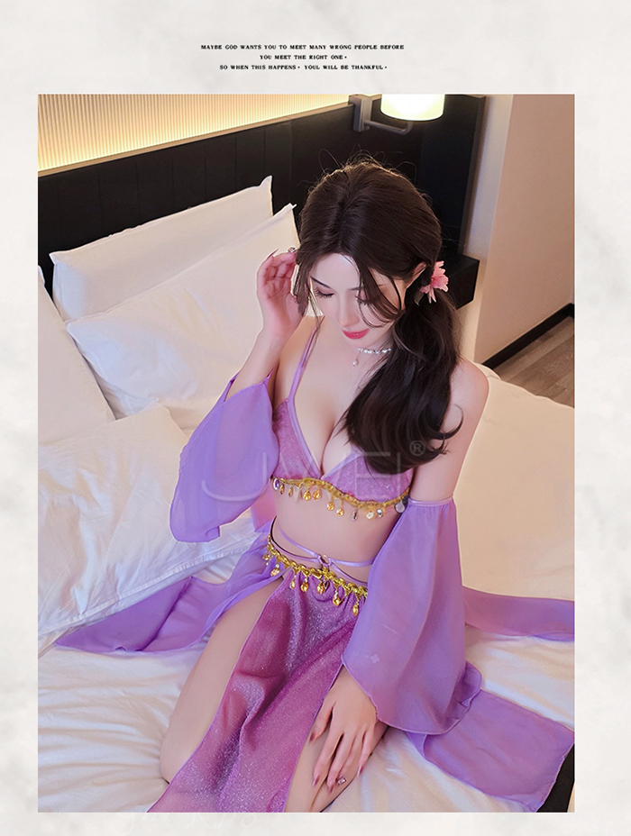 ►您現在的位置:首頁>情定西域.異域風情復古亮片拼接裙擺角色扮演服-紫色【胸罩+短裙+T褲+袖子*2】