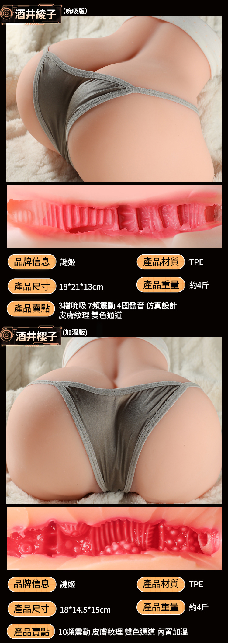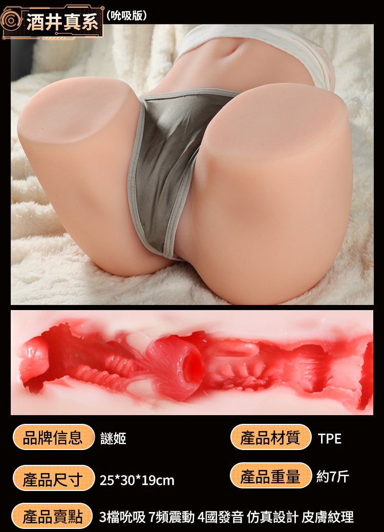 謎姬 MizzZee.酒井櫻子.多頻震動+加溫小美臀 酒井系列多功能美臀倒模 男用自慰器 2KG