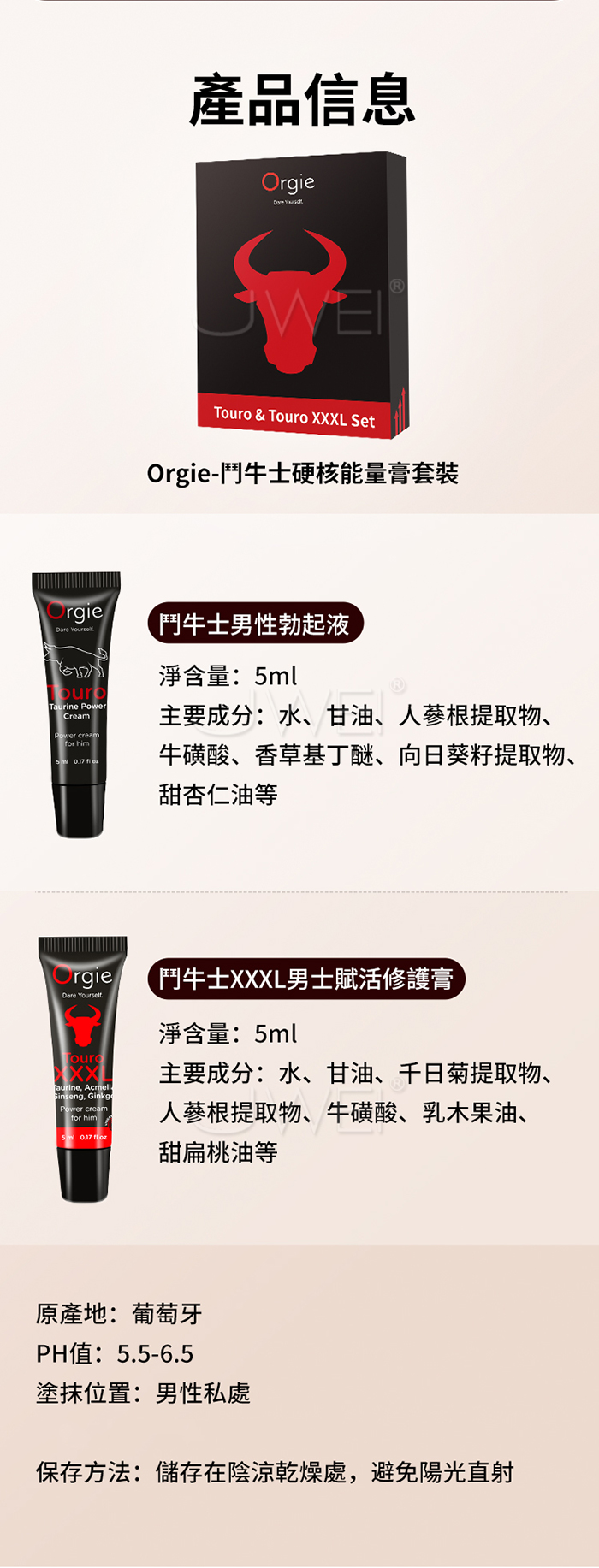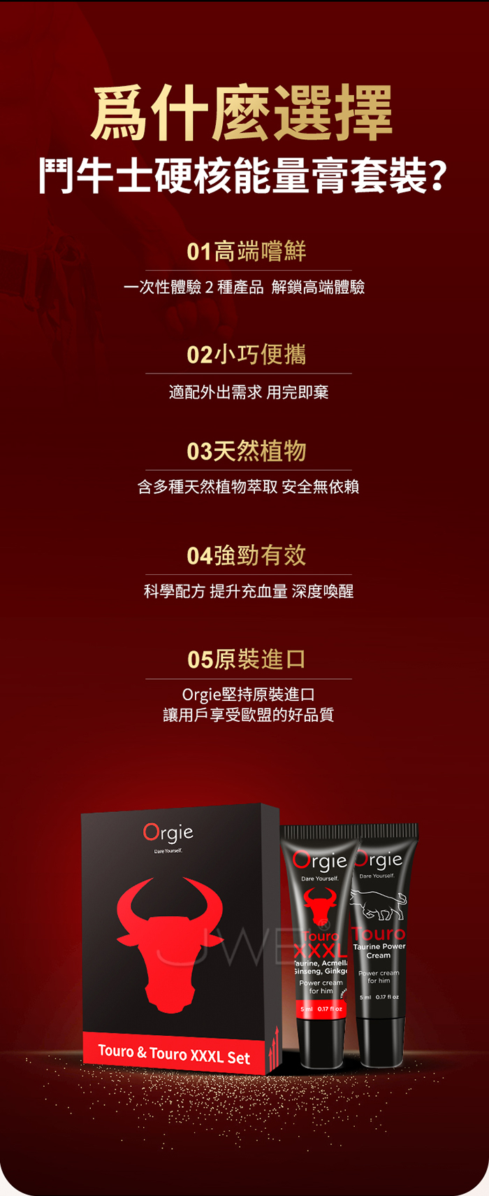 葡萄牙Orgie.Touro & Touro XXXL 兩種硬核 快速喚醒 鬥牛士硬核能量膏套裝 5ml【2入裝】
