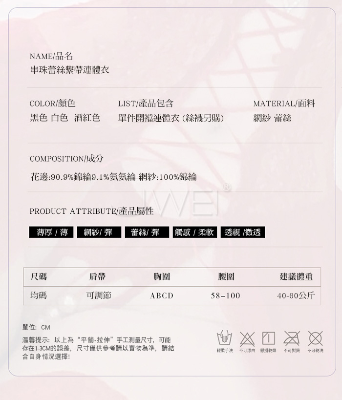 2.基於保障消費者個人衛生,情趣衣物類恕不接受退換貨,如為商品本身暇疵,接受三日內換貨,請勿試穿。