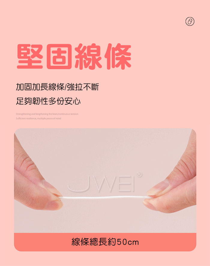 人性化設計,約可承受7KG拉力測,線條總長約50cm