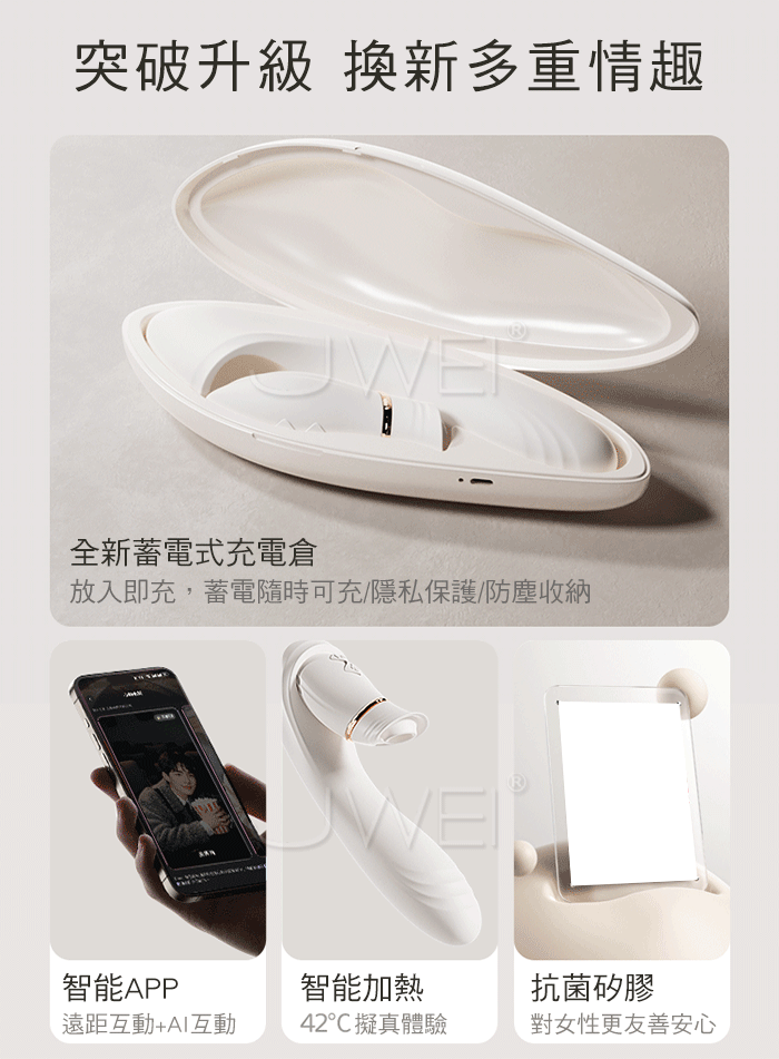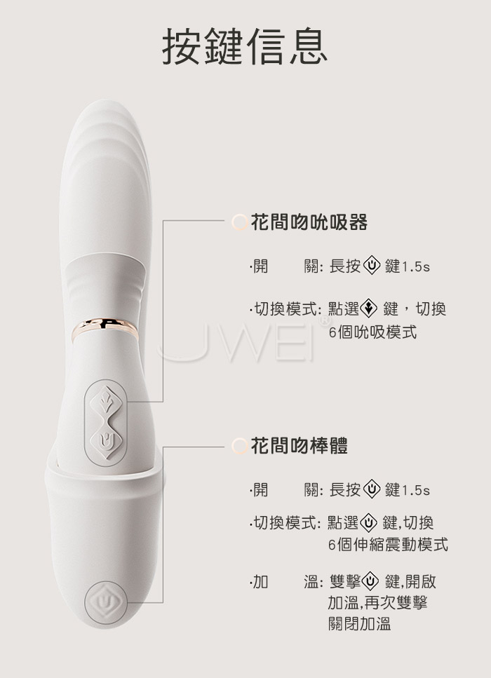| 花間吻.6x6頻伸縮強震深吻吮吸 分離式加溫智能遠控按摩棒【蓄電倉款】
