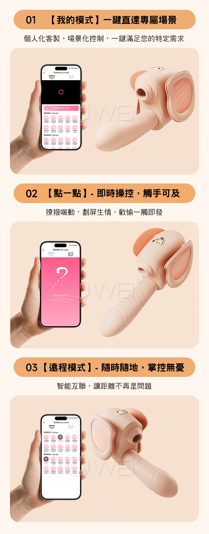 ■功能:5頻伸縮震動、5頻吮吸、APP智控、加溫