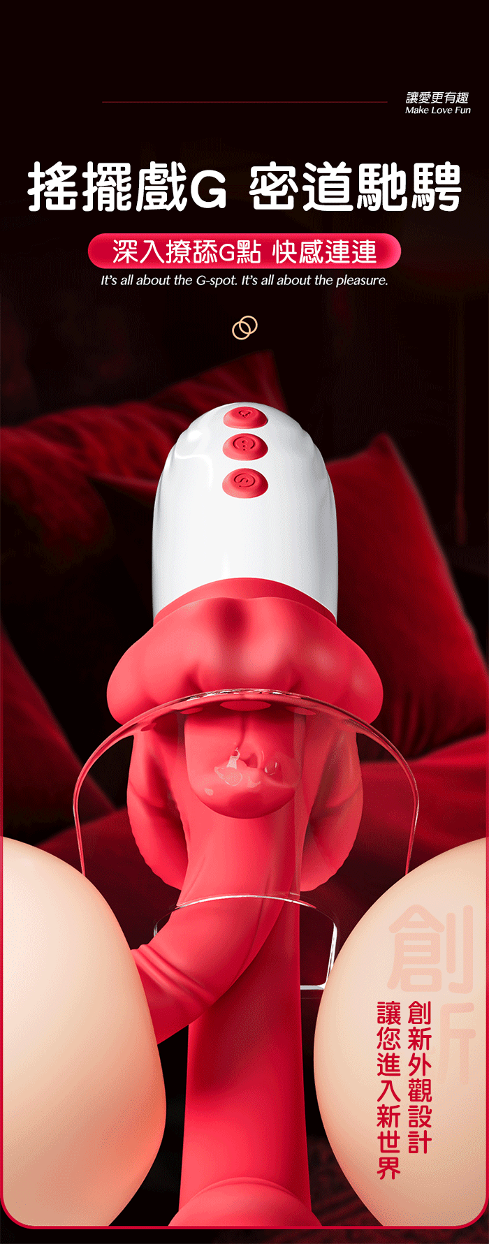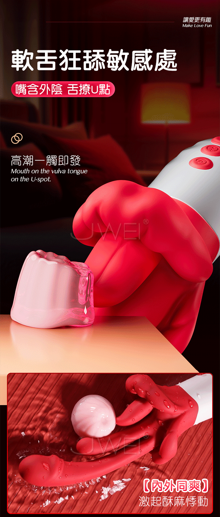 | 霸王唇.5x10頻旋轉舌舔搖擺撩G 頂震觸芯 三點刺激仿真體熱按摩棒