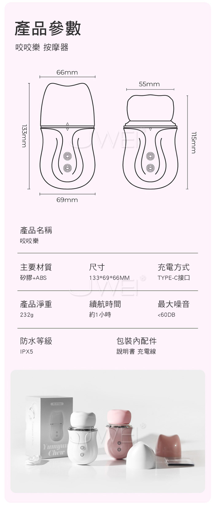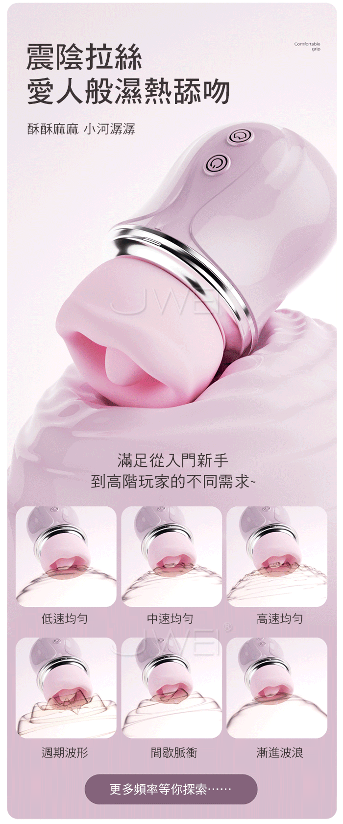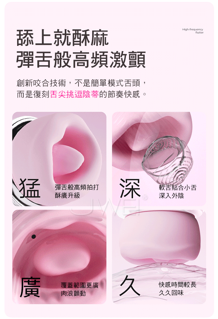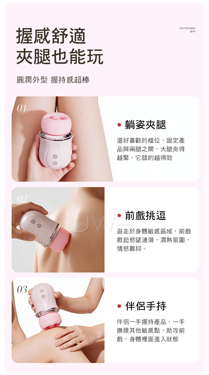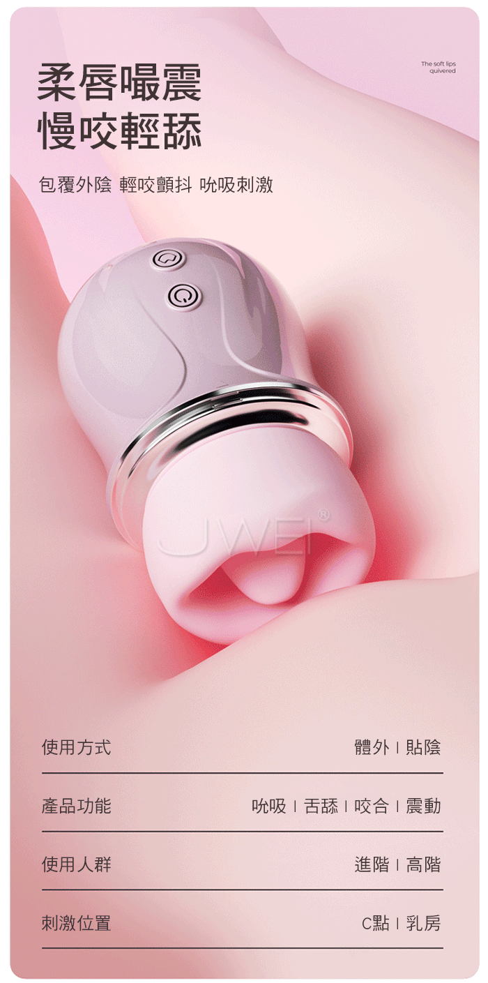 全包裹覆蓋舌吸,一口含住就失控,舔上就酥麻,彈舌般高頻激顫 柔唇嘬震慢咬輕舔,包覆外陰 輕咬顫抖 吮吸刺激,花樣玩不停! 創新咬合技術,不是簡單模式舌頭,而是復刻舌尖挑逗陰蒂的節奏快感。 ■尺寸:大小詳如圖片標示 ■材質:矽膠+ABS ■功能:9吮吸舌舔、APP智控