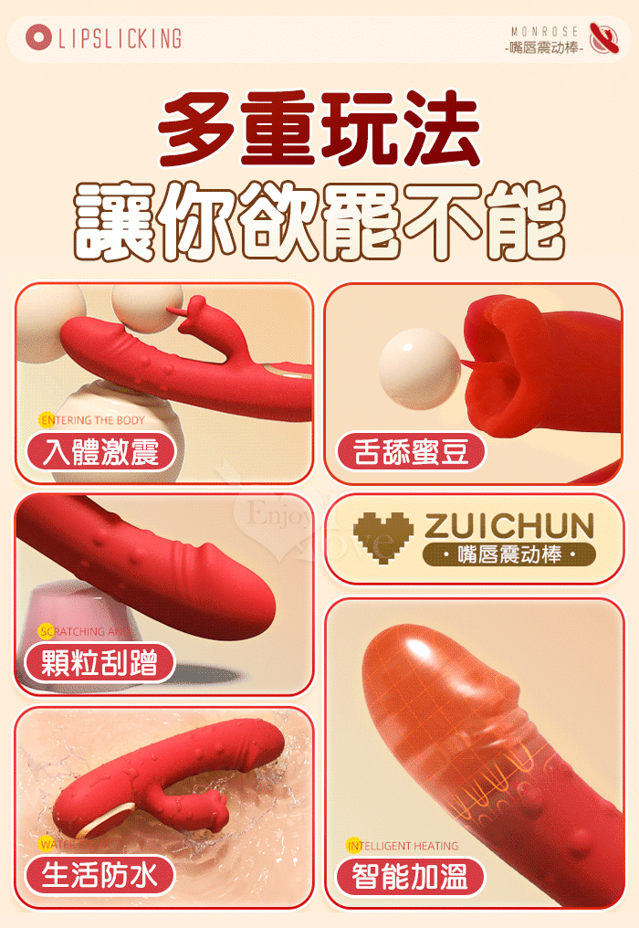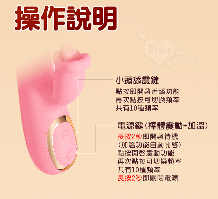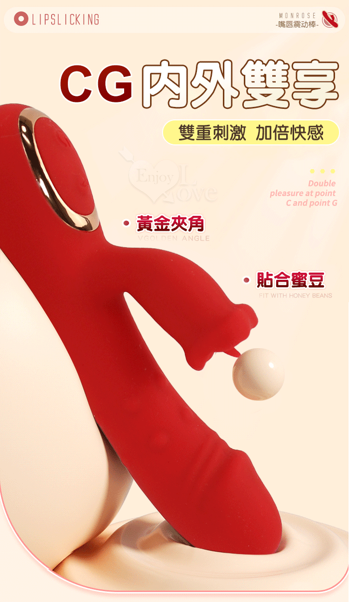 ROSELEX 迷你糕潮神器 雙10頻雙激震舌擊點 CG內外同享加溫按摩器 - 紅