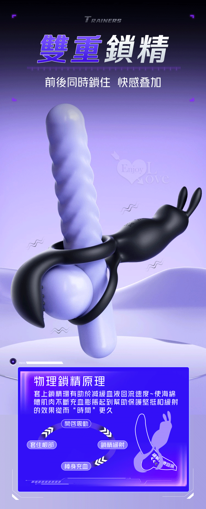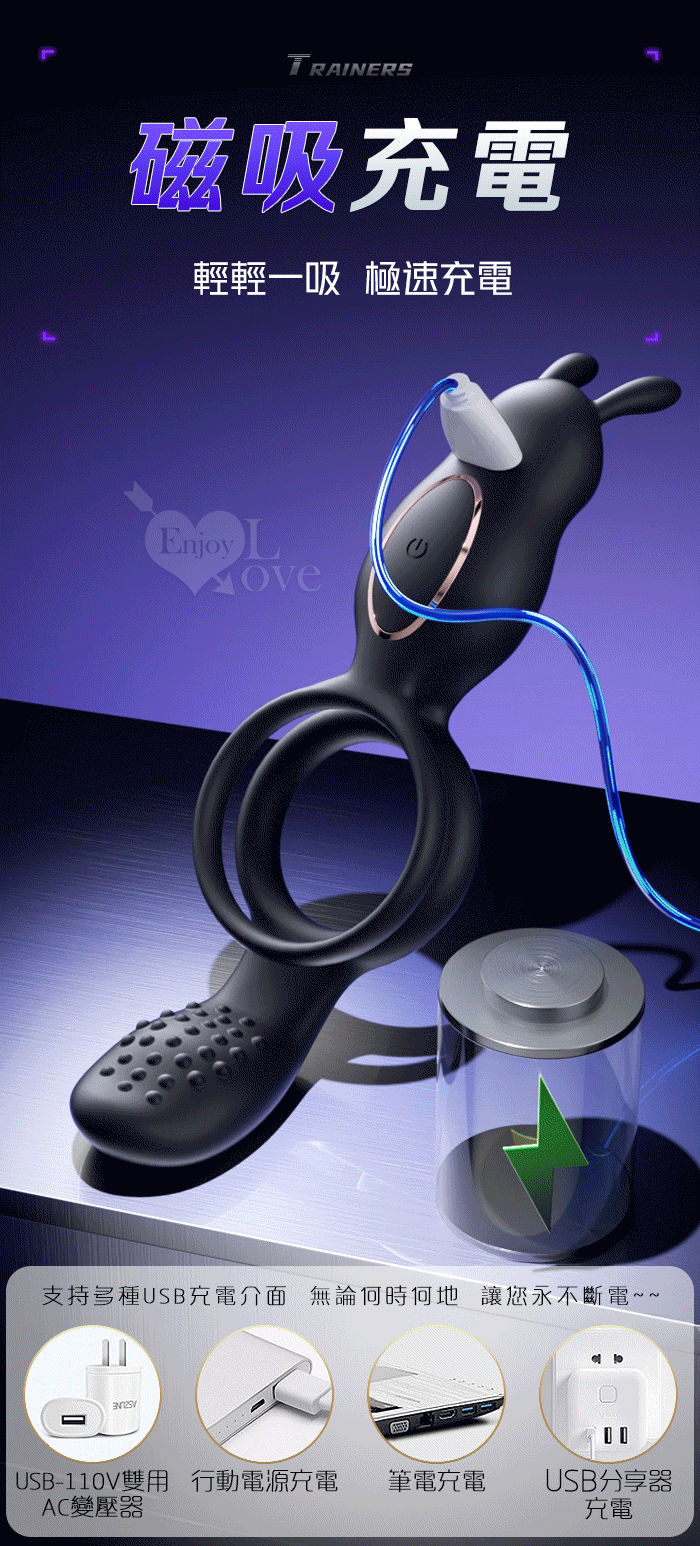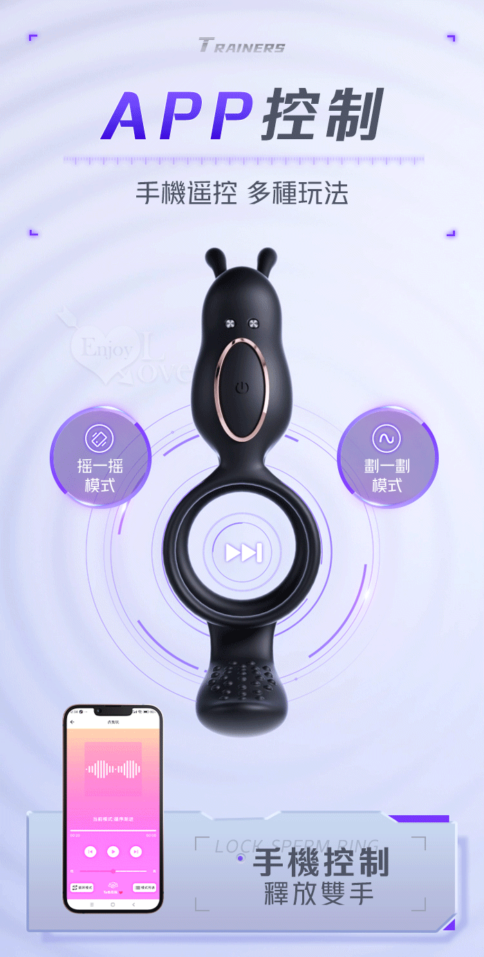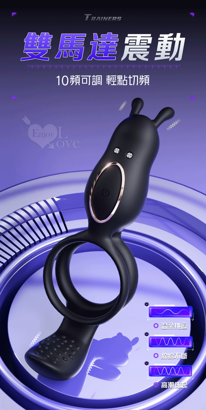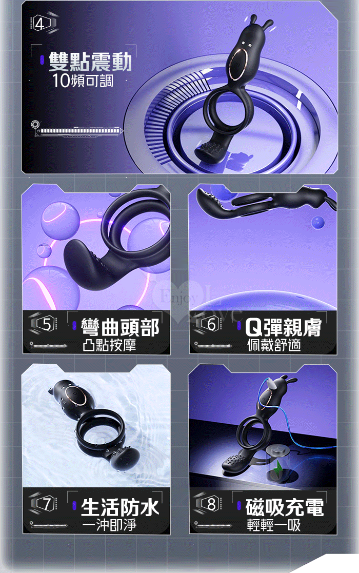 | ROSELEX 捷久耐戰男女歡樂套環﹝10頻雙點強震+雙環鎖精緩射+兔撩震陰蒂+尾巴撩震蛋蛋+共震調情﹞可手機APP遙控﹝具兩種操控模式﹞